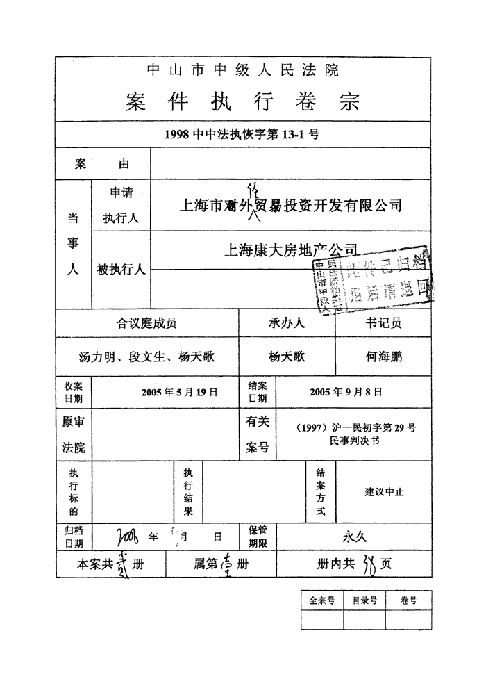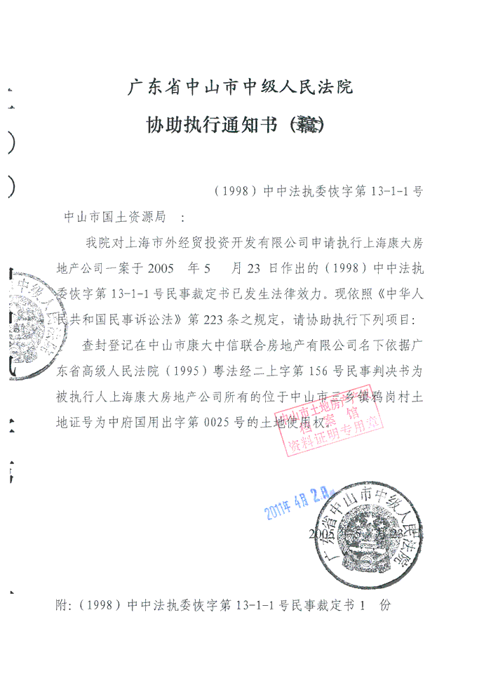 报送:最高院周强院长、上海高院崔亚东代院长、广东高院郑鄂院长、中山人大主任薛晓峰、中山市李茂辉市长、中山中院潘墀院长、中山市检察院叶祥考院长、中山纪委书记李君能。