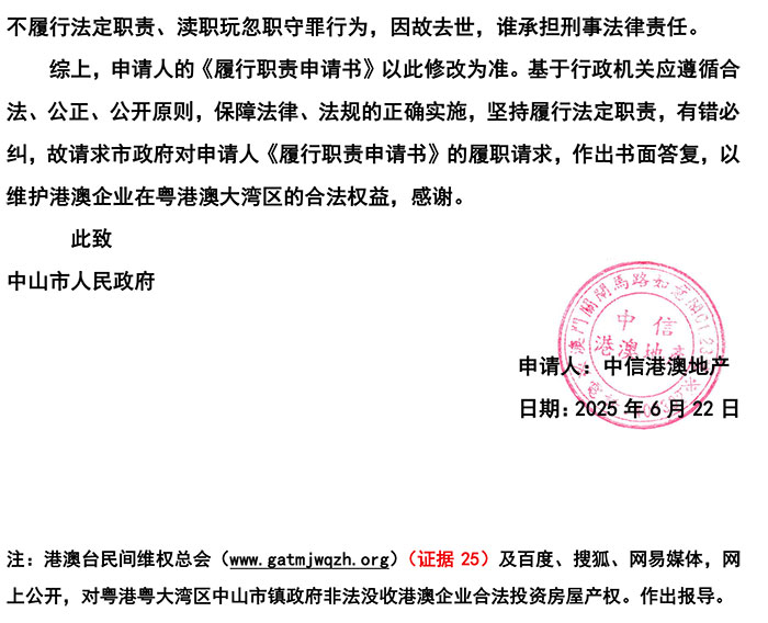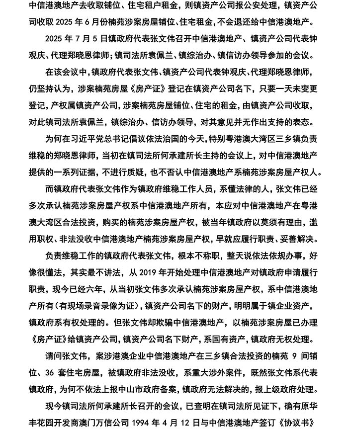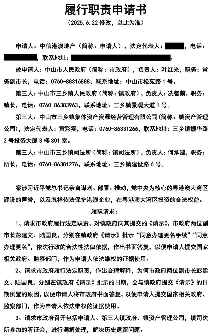 链接5: 2025年6月25日致三乡镇政府和镇资产管理公司的《履行法定职责申请书》