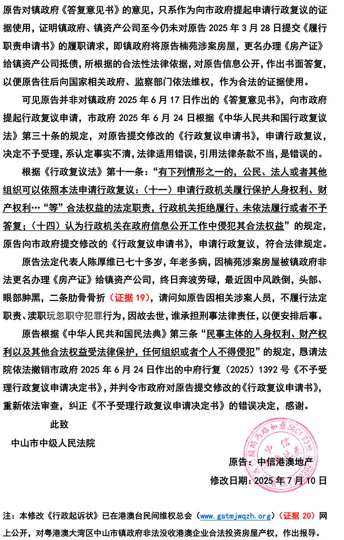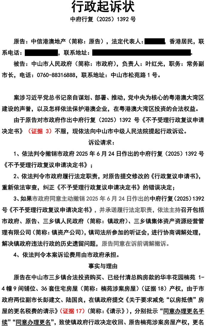 链接6: 2025年6月14日致中山市行政复议办公室《行政复议申请书》