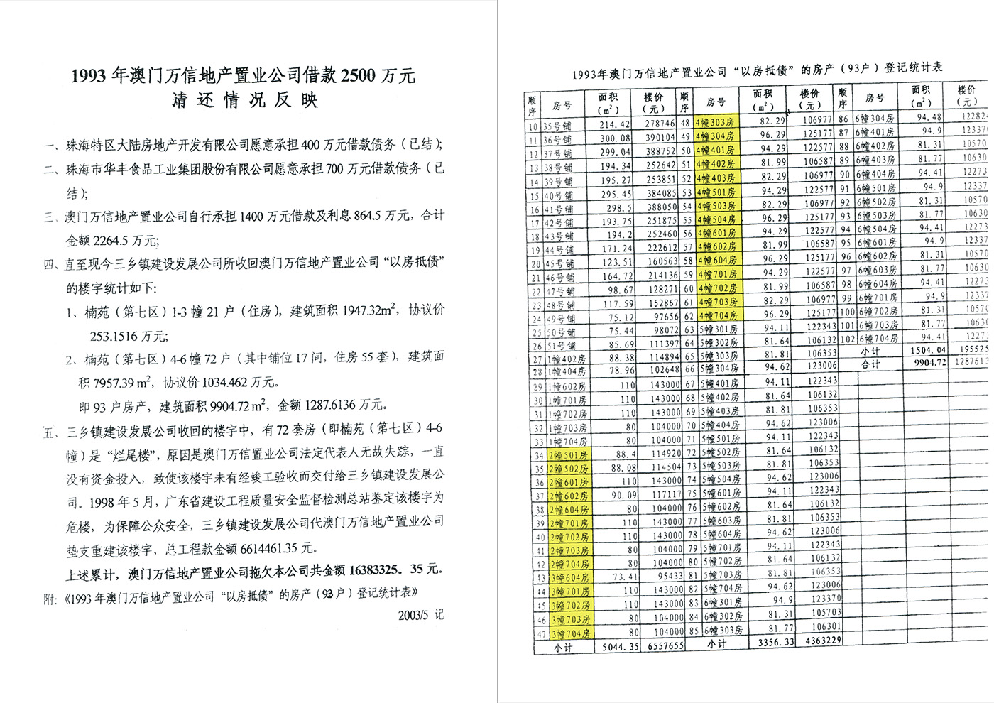 由于澳门万信公司未按《还款协议书》约定,清偿8645000元的借款本息,出现争议。镇政府本应向法院提起诉讼解决争议,但镇政府反而向市政府提交《关于要求减免“以房抵债”房屋的更名税费的请示》(简称:《请示》),并虚构包括产权为中信港澳地产所有,涉案房屋在内的93套“以房抵债”的楼宇名单,造成中信港澳地产在粤港澳大湾区三乡镇合法投资价值数千万元华丰花园楠苑涉案房屋,被镇政府非法没收、并更名办理了《房产证》到镇资产管理公司名下,以清偿澳门万信公司《还款协议书》尚欠的8645000元高利贷借款本息。
