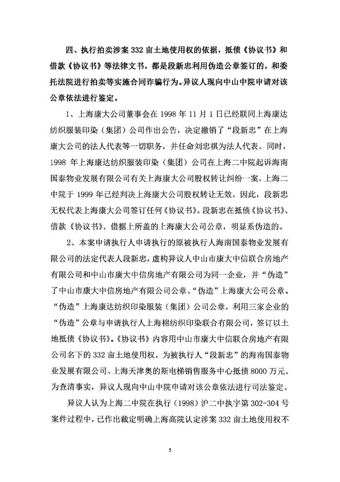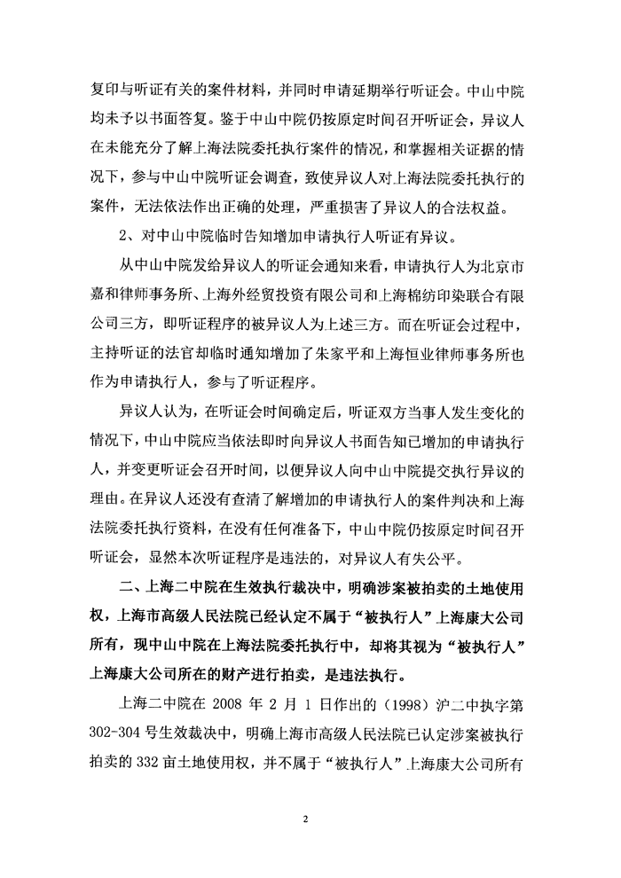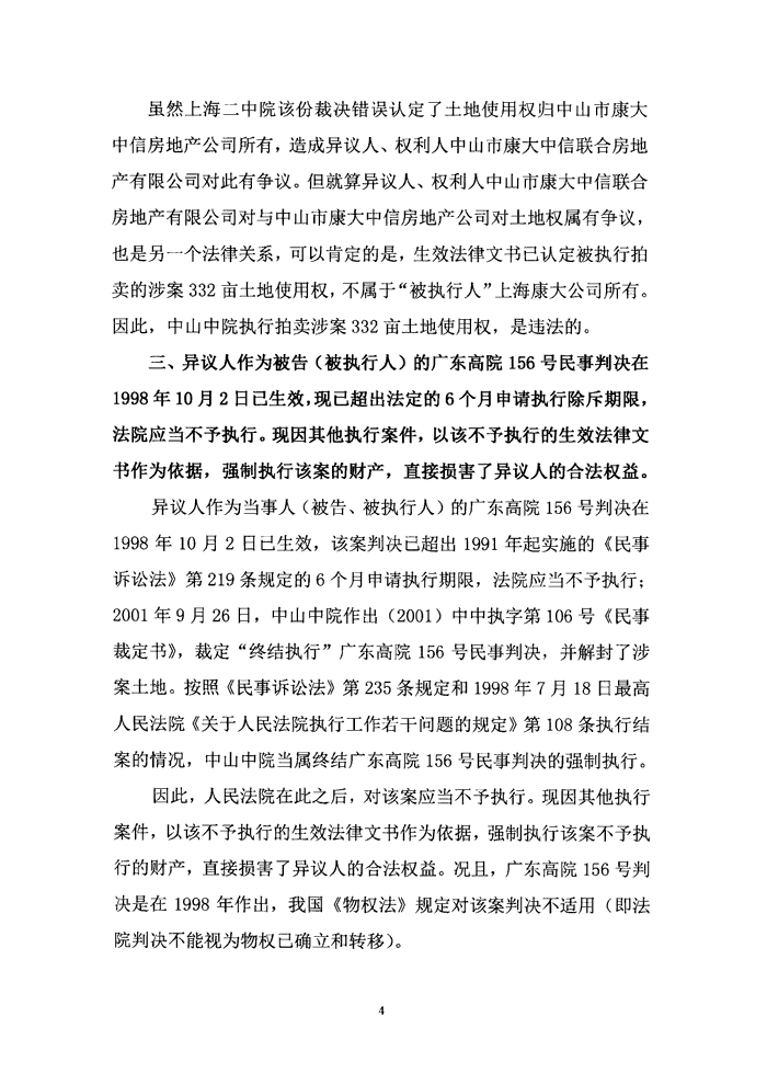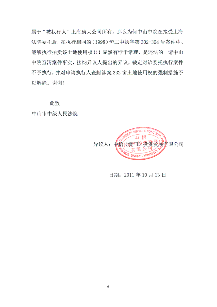 《执行异议书》--中信(澳门)投资发展有限公司