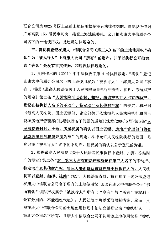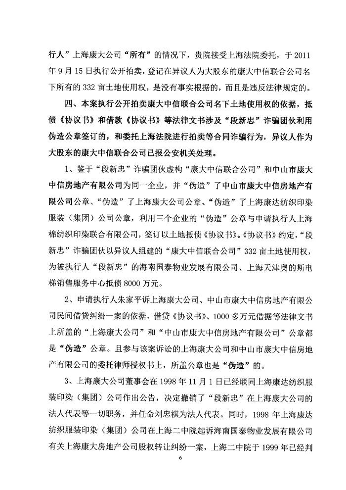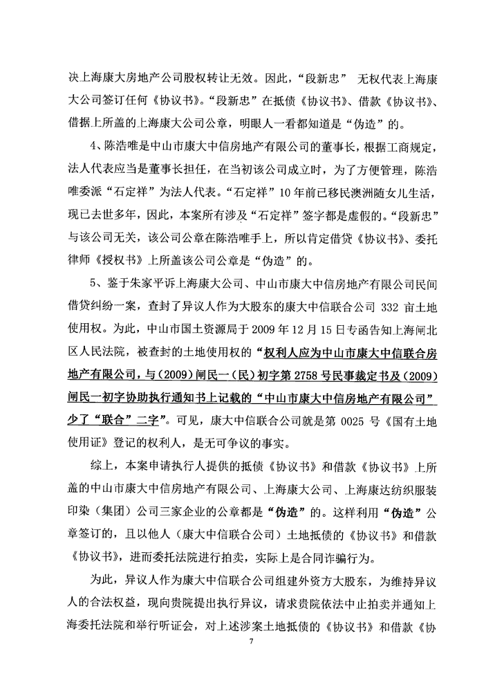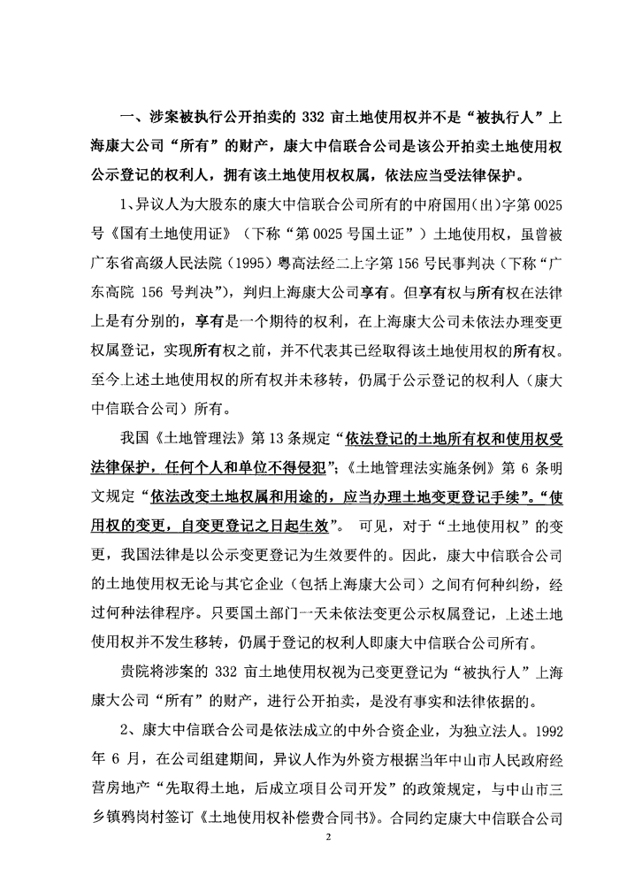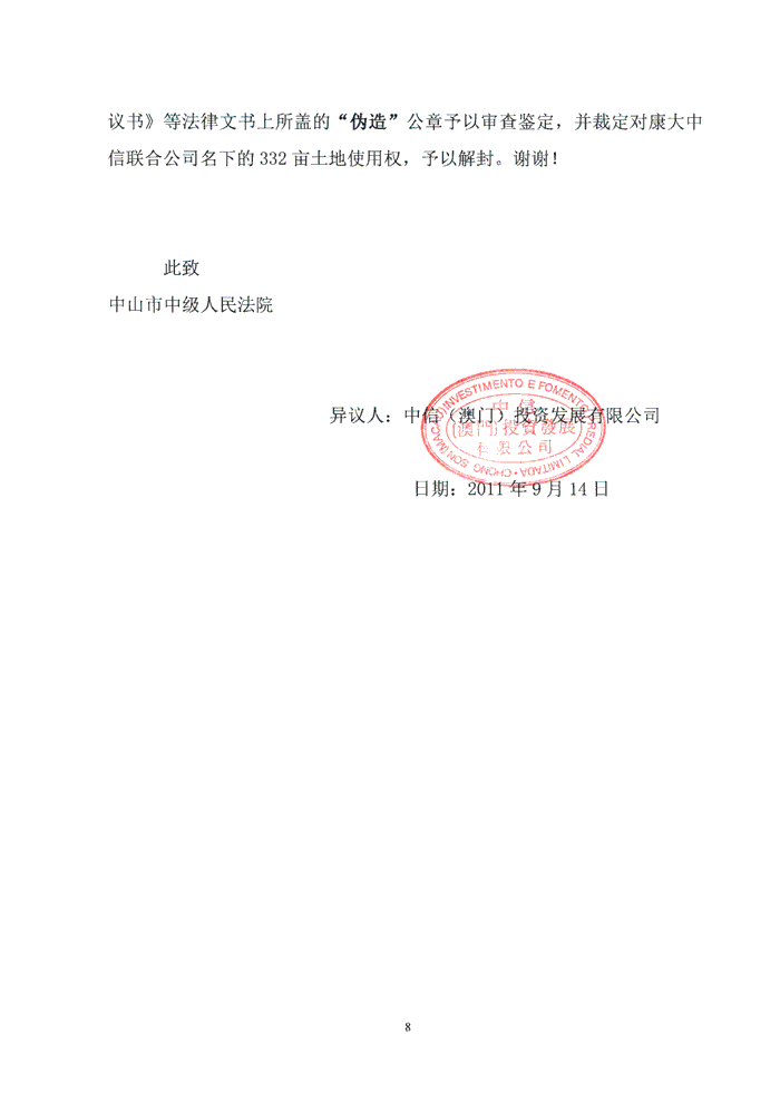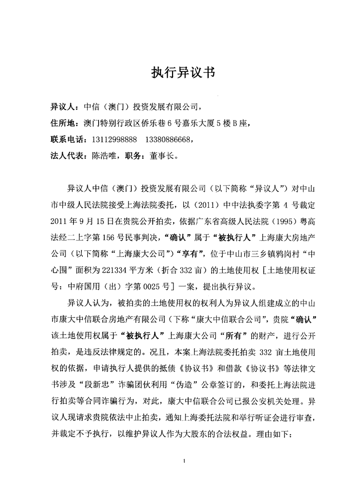 >> 《执行异议书》--中信(澳门)投资发展有限公司