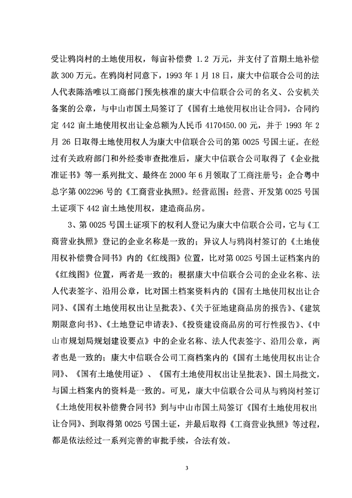 《听证会补充意见》--中山市康大中信房地产有限公司