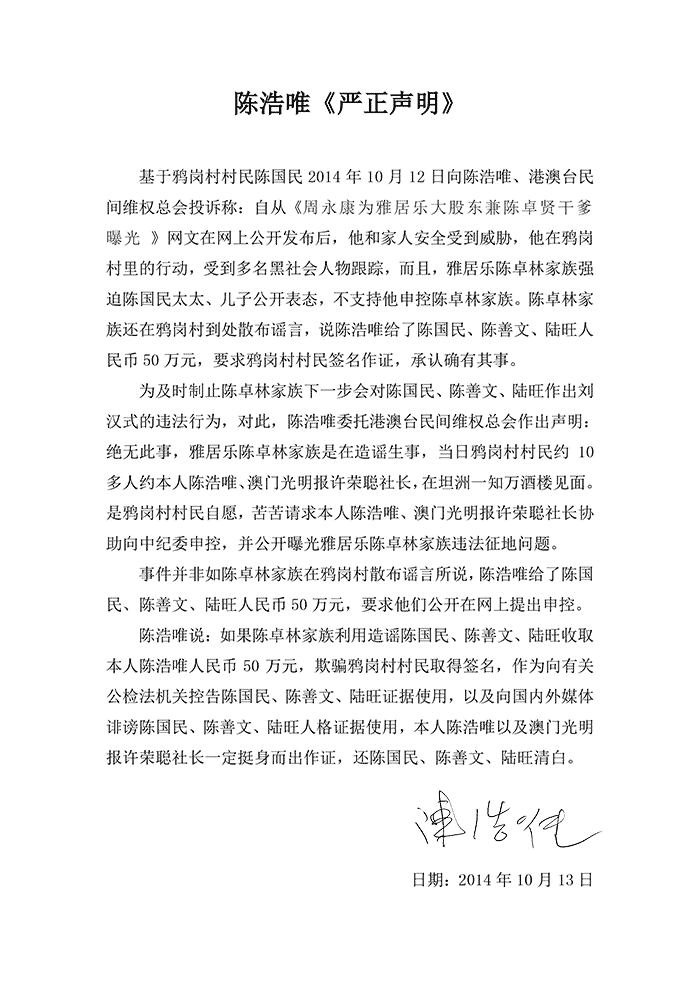 对雅居乐2014年10月7日《严正声明》作出反驳